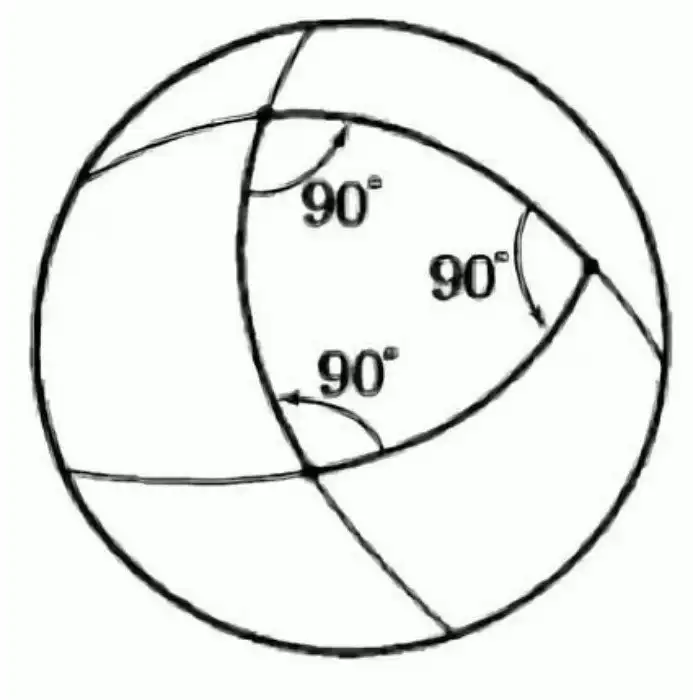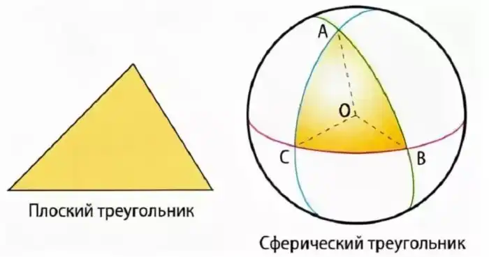 Ключ к загадке – «сфера». Школьная геометрия называется «планиметрия», то есть это геометрия на плоской поверхности. А если мы возьмём мяч или глобус и начнём на нем проводить линии и строить фигуры, то быстро убедимся, что все «сумасшедшие» законы и теоремы, приведённые выше, прекрасно выполняются!