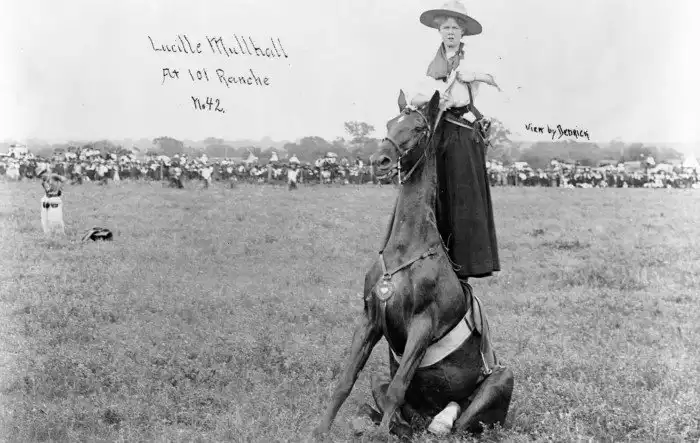 Вскоре после этого эпоха открытых пастбищ и долгих перегонов скота прошла - рядом с пастбищами построили крупные мясокомбинаты. В 1900-х появился новый вид женщин-ковбоев – участницы родео. Сначала женщины участвовали в таких соревнованиях неофициально, а затем известный шоумен Буффало Билл пригласил их участвовать в своих "Шоу Дикого Запада". Многие дамы тогда начали профессионально заниматься родео - и им даже удавалось порой превзойти мужчин. Одной из таких ковбойш была Фенни Сперри Стил. Однако, в 1925 году женщинам запретили участвовать в родео.