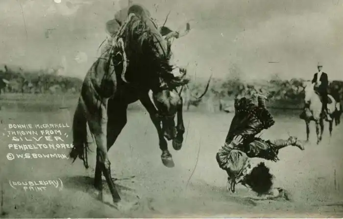 Фокс Гастингс, ковбойша и наездница, на первом ежегодном родео в Лос-Анджелесе примерно в 1920-х годах