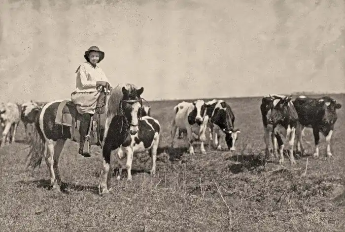 "Вот уже около 20 лет на западных ранчо живут ковбойши, которые во всем похожи на настоящих ковбоев. Они ездят в таких же седлах, на таких же лошадях, выполняют такие же обязанности, и надо сказать, выполняют очень эффективно," - писала владелица ранчо и фотожурналистка Эвелин Камерон в 1880-х годах. Она описывала cowgirls, они же каугерлс или женщин-ковбоев, которые начали появляться в Техасе еще в 19 веке.