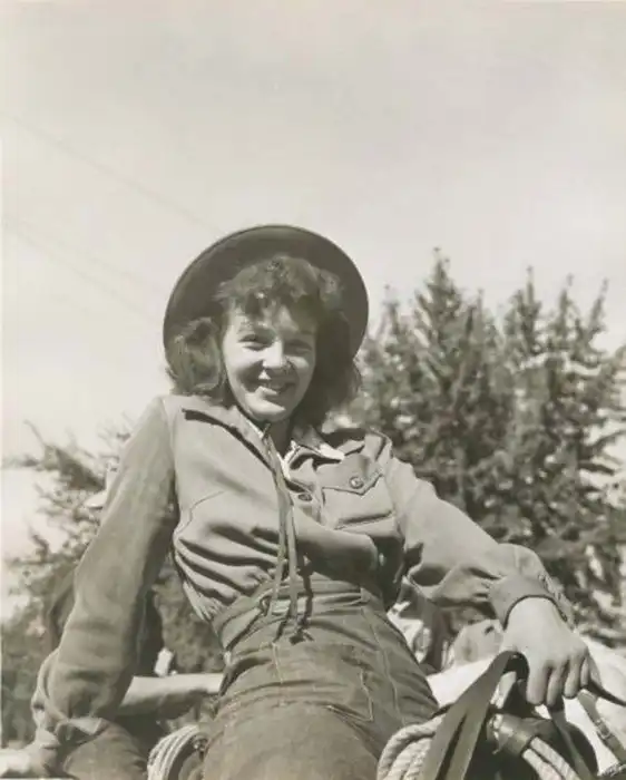 Кэтлин Хадсон, участница юношеского клуба верховой езды и канатного спорта, в Оклахоме в 1948 году