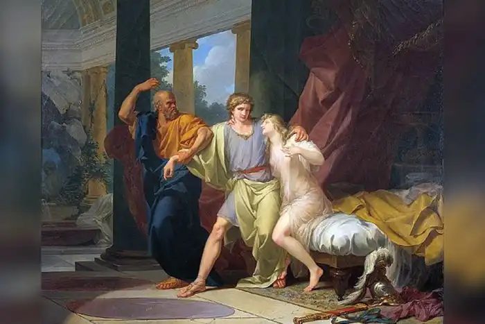 «Сократ, уводящий Алквиада с ложа женщины», картина Ж. Б. Рагно, 1791 год