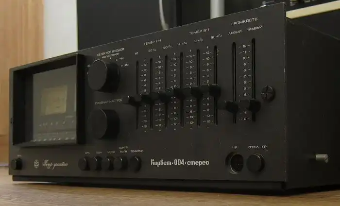 В блоке усилителя был предусмотрен шестиполосный эквалайзер, отключаемая тонкомпенсация и выход на наушники. Регулятор громкости был ползунковый и отдельный для каждого канала.
