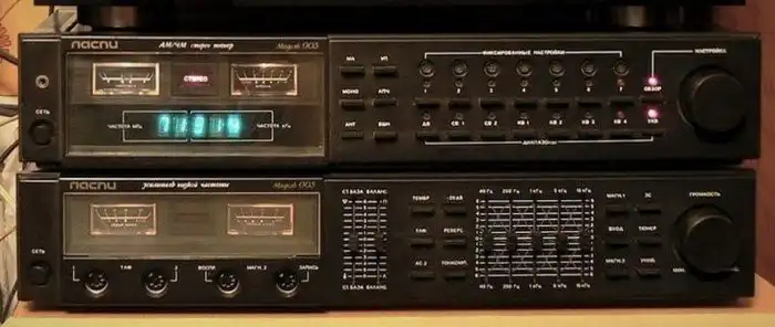 Интересный двухблочный комплект, состоявший из тюнера и усилителя мощности, производился с 1981 года Севастопольским радиозаводом имени Калмыкова. Приемник работал в диапазонах ДВ, СВ, КВ и УКВ, имел фиксированную настройку на семь радиостанций, цифровую индикацию частоты, световую индикацию наличия стереосигнала, индикаторы многолучевого приема, точной настройки и напряженности поля.