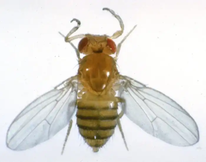 Мухи дрозофилы в принципе очень сильно подвержены различным мутациям. Вот, например, у этой на месте усов выросли ноги.