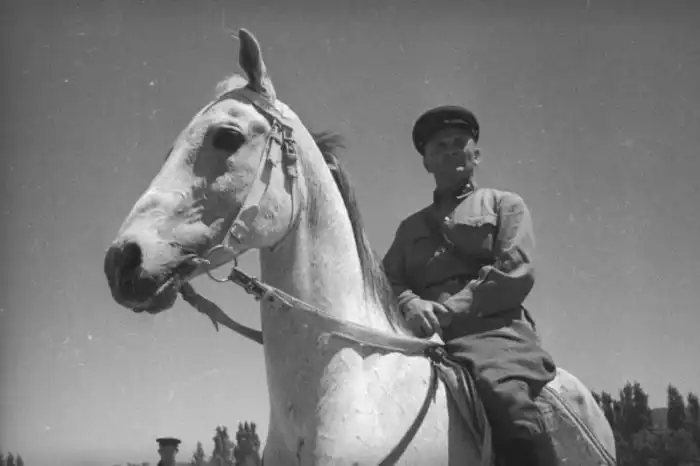 Ниже вы видите советского кавалериста в галифе на лошади. Обратите внимание на брюки. Сравните их с картинкой французского кавалериста вверху.