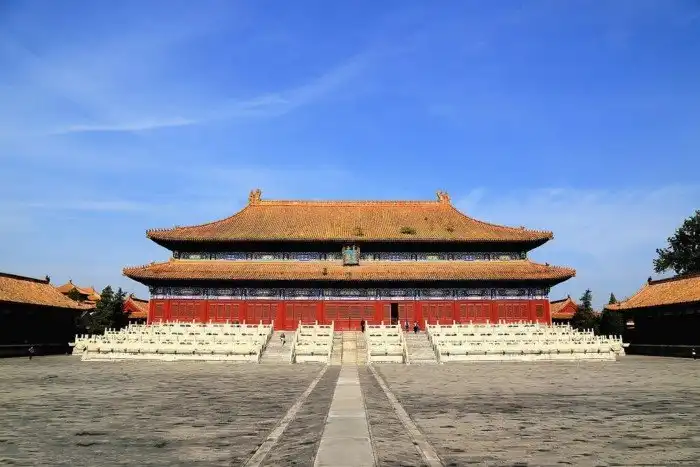 Геометрия дворца очень символична: все коридоры и переходы выполнены в форме триграммы Цянь, симвозизирующей небо, а залы - в форме триграммы КУКун, символизирующей Землю.