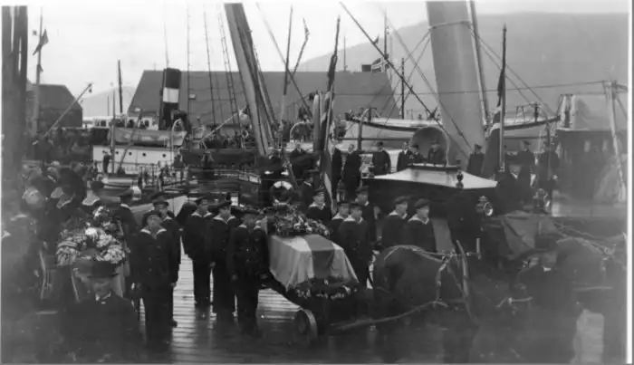 Тела Андре, Стриндберга и Френкеля доставленные в Стокгольм, 1930 г. Источник изображения: музей Гренны