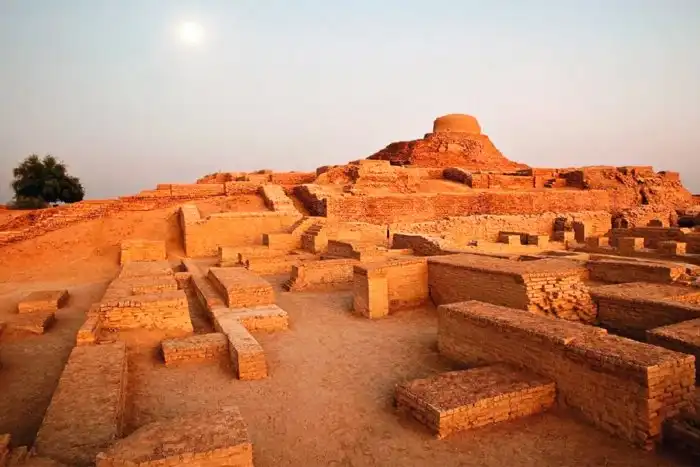 Мохенджо-Даро возник около 2600 года до н.э. и насчитывал до 40 тысяч жителей. Город был сложен из обожженного кирпича, имел канализацию, двухэтажные дома, мощенные широкие улицы и мощные оборонительные сооружения. Это был полис-государство, стёртый с лица земли в XVIII веке до н.э.