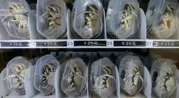В 2010 году в Китае, на станции метро в Нанкине, появился первый автомат по продаже живых крабов. Торговые автоматы из-за своего удобства популярны во всём мире, но в Азии они занимают особое место.