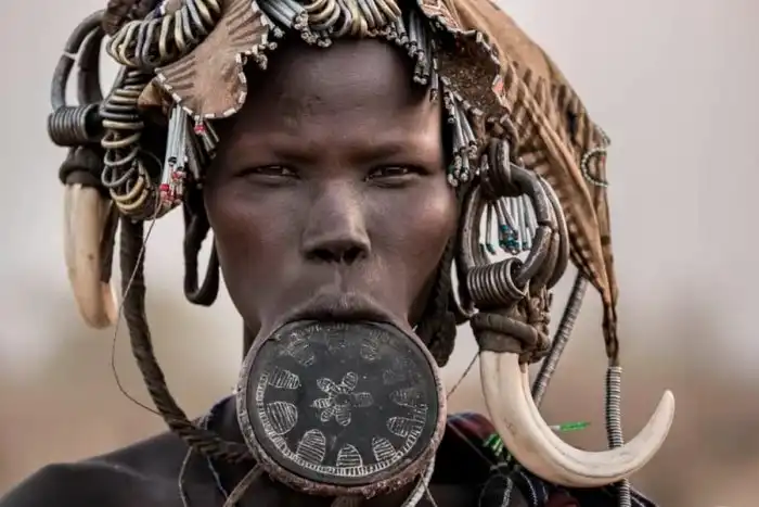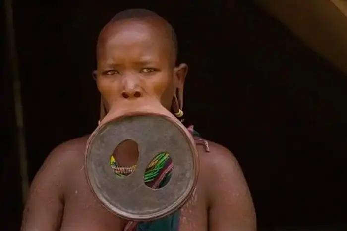 Небольшая народность мурси на юге Эфиопии и родственное им племя сури практикуют ношение женщинами тарелки дэби в отверстии нижней губы.