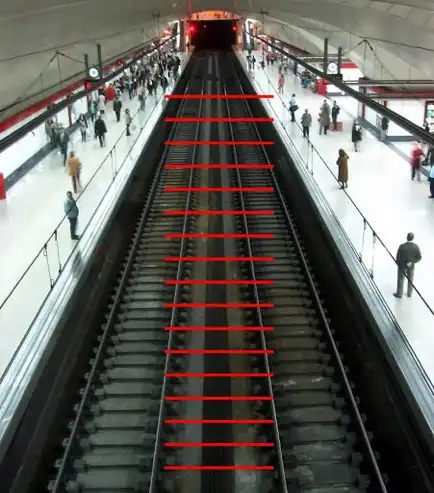 Самый распространенный пример иллюзии – это сходящиеся рельсы. Еще в далеком 1913 году итальянец Марио Понцо доказал, что наш мозг определяет размер объекта, основываясь на фоне позади него. На рисунке ниже красные линии одинаковы, параллельны и находятся на одинаковом расстоянии друг от друга. И все же… ближние к нам линии кажутся короче.