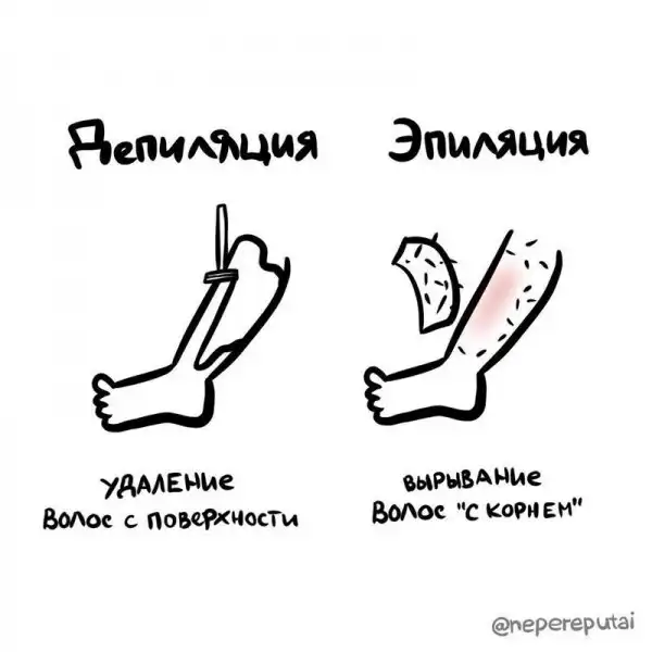 В инстаграм-аккаунте под названием «Не перепутай!» с помощью минималистичных рисунков и кратких описаний просто и доступно объясняют разницу между депиляцией, эпиляцией и так далее. Тут всё настолько доступно, что, возможно, отныне вы навсегда запомните разницу.