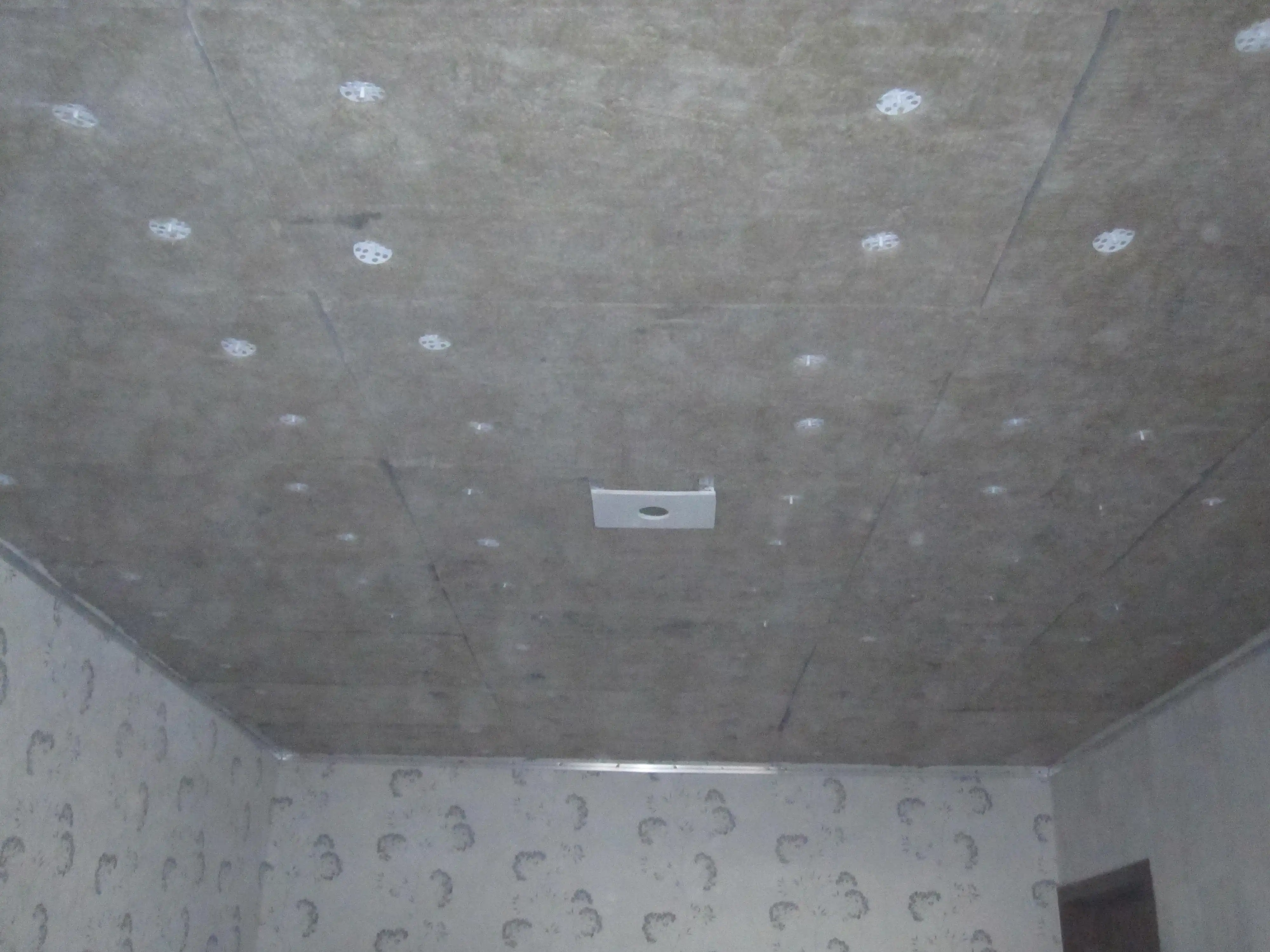 Для установки звукоизоляции потребуется произвести монтаж деревянного каркаса. Минеральная вата выпускается в рулонах или матах, от ширины которых зависит расположение реек. Для качественной и надежной фиксации, вата должна плотно и с натяжкой заходить под деревянные рейки. Чтобы обеспечить хорошее крепление, расстояние между элементами каркаса должно быть меньше, чем ширина материала. Чтобы исключить возможное падение кусков минеральной ваты, утеплитель можно дополнительно фиксировать, прибивая плиты гвоздями к потолку. Основной недостаток этого материала состоит в неустойчивости к воздействию влаги.