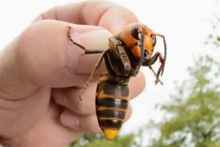 На фото - японский шершень. Или, по-научному, Vespa mandarinia japonica.