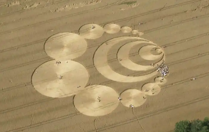 Впервые о кругах на полях заговорили еще в 16 веке, однако это явление привлекло внимание общественности только в 1978 году, когда подобные круги появились на поле недалеко от Уорминстера в Уилтшире, Англия. Именно тогда на юге Англии и во всем мире появились сотни кругов на полях. Как и следовало ожидать, многие обвинили в происходящем инопланетян: считалось, что это следы от приземления НЛО. Но правда гораздо прозаичнее: круги оказались простым розыгрышем. Еще в 1991 году два друга, Дуг Бауэр и Дэйв Чорли, признались, что именно они нарисовали те первые круги на полях Уилтшира. Они рассказали, что их вдохновило письмо, опубликованное в выпуске журнала New Scientist за 1963 год о «гнездах летающих тарелок». Друзья решили немного поразвлечься и попробовать сделать такие круги самостоятельно. Они даже показали BBC, как именно им это удалось: они использовали простую доску с веревками на концах. Один из них стоял, держась за один конец веревки, пока как другой натягивал противоположный конец веревки до упора и ходил по кругу, позволяя доске приминать растения. Бауэр и Чорли признались, что нарисовали сотни кругов на полях по всей Англии, всегда работая под покровом темноты. Несмотря на их признание, некоторые люди все еще верят, что круги на полях – это места посадки НЛО.