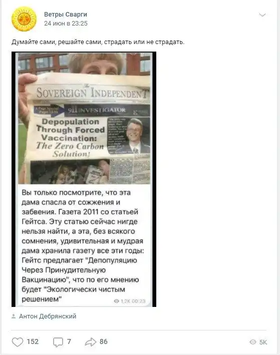 Sovereign Independent конспирологические издание, вечно ищущее заговоры и Гейтс не давал там никаких интервью