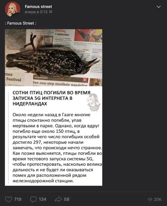 2018 год, вскрытие показало, что птицы отравились, но как ж без 5G