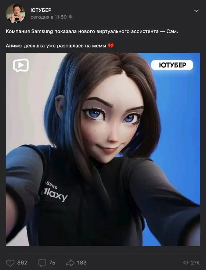 Сэм ассистент компании CGI-студия Lightfarm. А причем тут Самсунг?