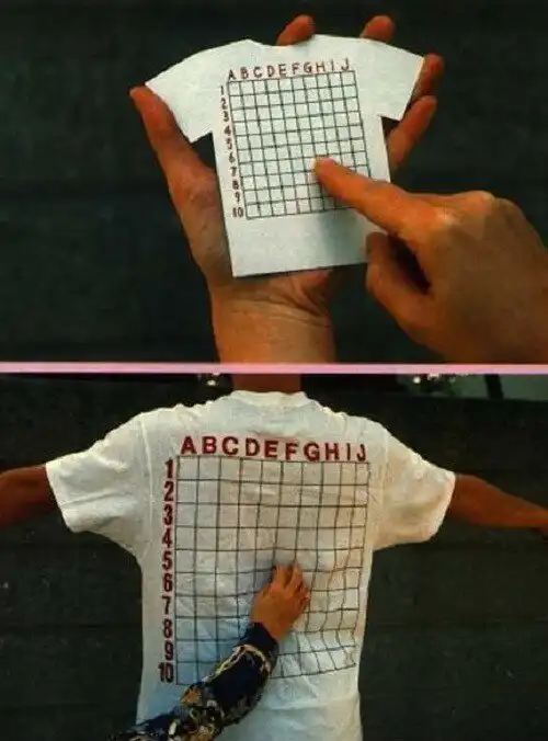 Футболка, в которой так удобно просить почесать спинку - скажешь номер квадрата, и тебе сразу, не целясь, почешут там, где надо