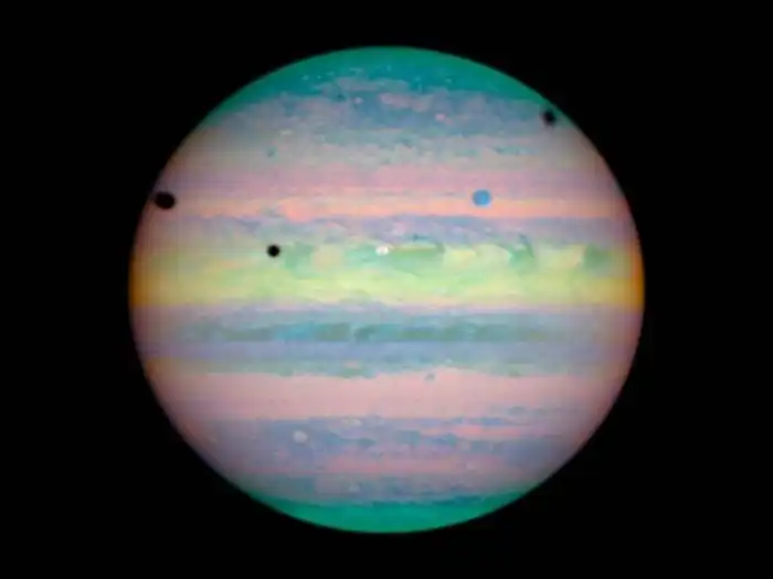 Наверняка вам приходилось хотя бы раз слышать о солнечном или лунном затмении. А вот затмение Юпитера - явление не очень распространенное. В 2015 году с помощью телескопа Хаббл ученые зафиксировали, как сразу 3 спутника Юпитера (Ио, Европа, и Каллисто) расположились в ряд перед крупнейшей планетой Солнечной системы.