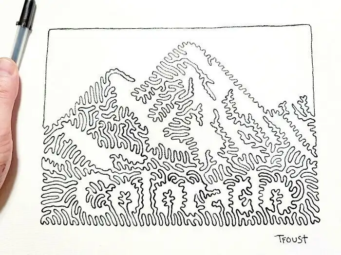 "Я рисую карту США, где каждый штат будет нарисован одной линией. Сегодня я звкончил седьмой по счету"