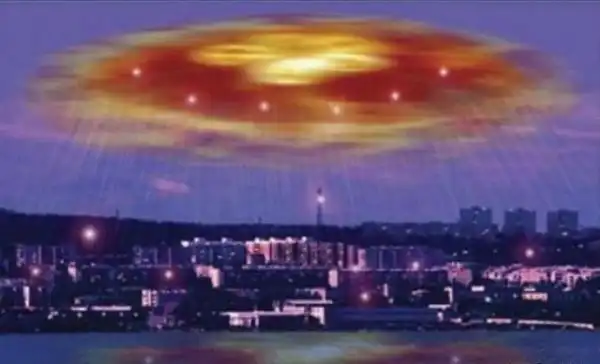 Струи газов, выходящие из зависшего яркого тела, у многих наблюдателей ассоциировались с раскрытым зонтиком, либо с «медузой». За несколько минут до появления «медузы» многие жители города были разбужены странным чувством тревоги. У многих это чувство было так велико, что люди, кто в чем был, выбежали ранним утром на улицу.