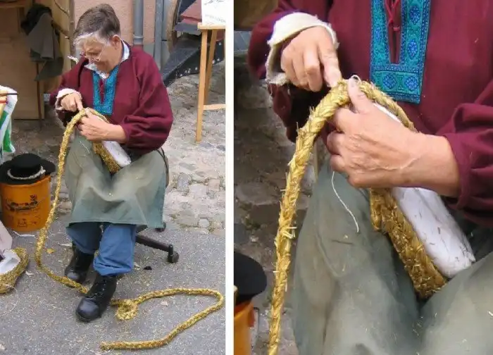 Плетёт лапти! Швейцарцы их называют "штрошу"... А вот корейские "чипсин":