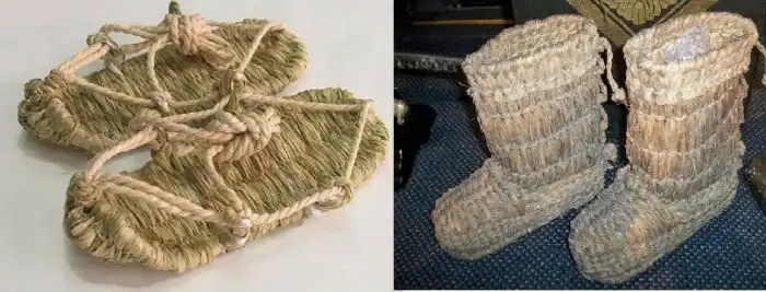 Подошвы тут, конечно, попрочней, чем у русских лаптей, но и возни с ними - дня на два, а русский лапотник плёл от трёх до пяти пар в день, четыреста пар за сезон!
