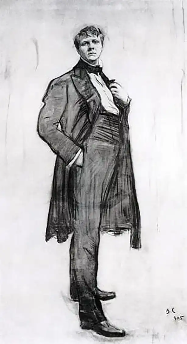 На рисунке Федор Иванович Шаляпин нарисованный углем Валентином Серовым.