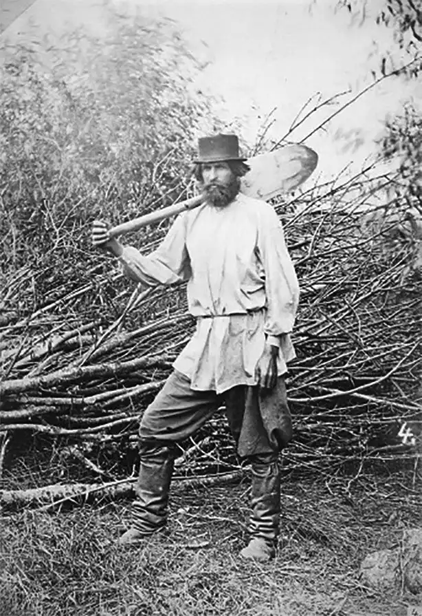 Дама-художница говорит: «Посмотри на этого мужичка. Всю жизнь косит крапиву, а зимой у окна зевает. И ничего ему не надо. Примитивный деревенский тип. Ты посмотри: щетина, старая рубаха и сапоги. На нем время остановилось. С девятнадцатого века, наверное».