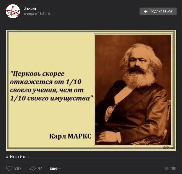 На самом деле Маркс сказал: «Так, высокая англиканская церковь скорее простит нападки на 38 из 39 статей её символа веры, чем на 1/39 её денежного дохода».