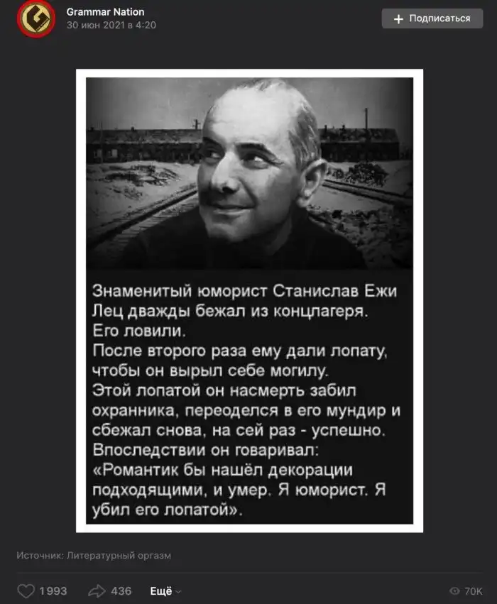 Никаких официальных жанных, подтверждающих расказ нет. По словам приятеля юмориста Станислав Ежи Лец копал себе могилу, но смог сбежать от расстрельной группы. Никого лопатой он не убивал.