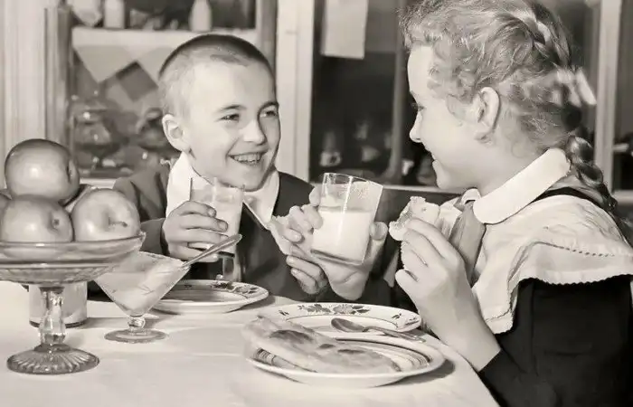 Пионеры пьют молоко. Фото: открытый источник.