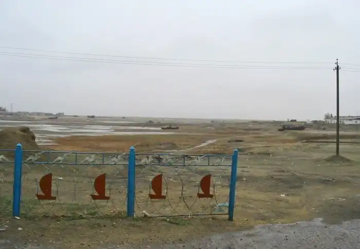 Это - порт города Аральск в Казахстане. Когда-то он был центром рыболовства, но во второй половине XX века здесь произошло резкое снижение уровня Аральского моря. С 90-х город официально входит в приаральскую зону экологического бедствия