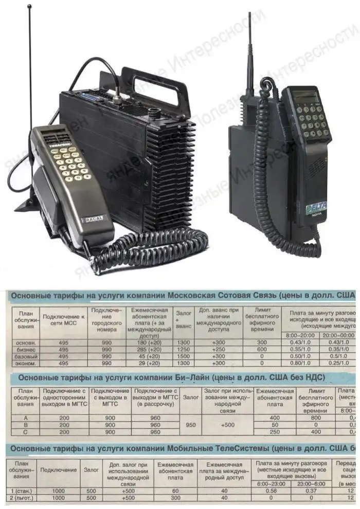 Стоимость телефона американской системы мобильной связи IMTS доходила до 4000$, а минута разговора-до 1,2 $. (в пересчете на сегодняшние деньги это 29000$)