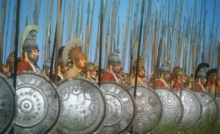 Что касается фалангитов в первых рядах, то как правило, их снаряжение, состоящее из широких щитов, нагрудников, наплечников и поножей, позволяло выдержать в бою 10-15 минут, после чего итог столкновения уже клонился к логическому концу.