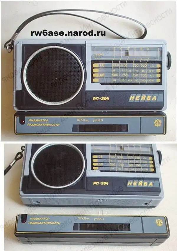 Еще интересной разработкой стала модель "Нейва РП-204" с индикатором радиоактивности (счетчик Гейгера)