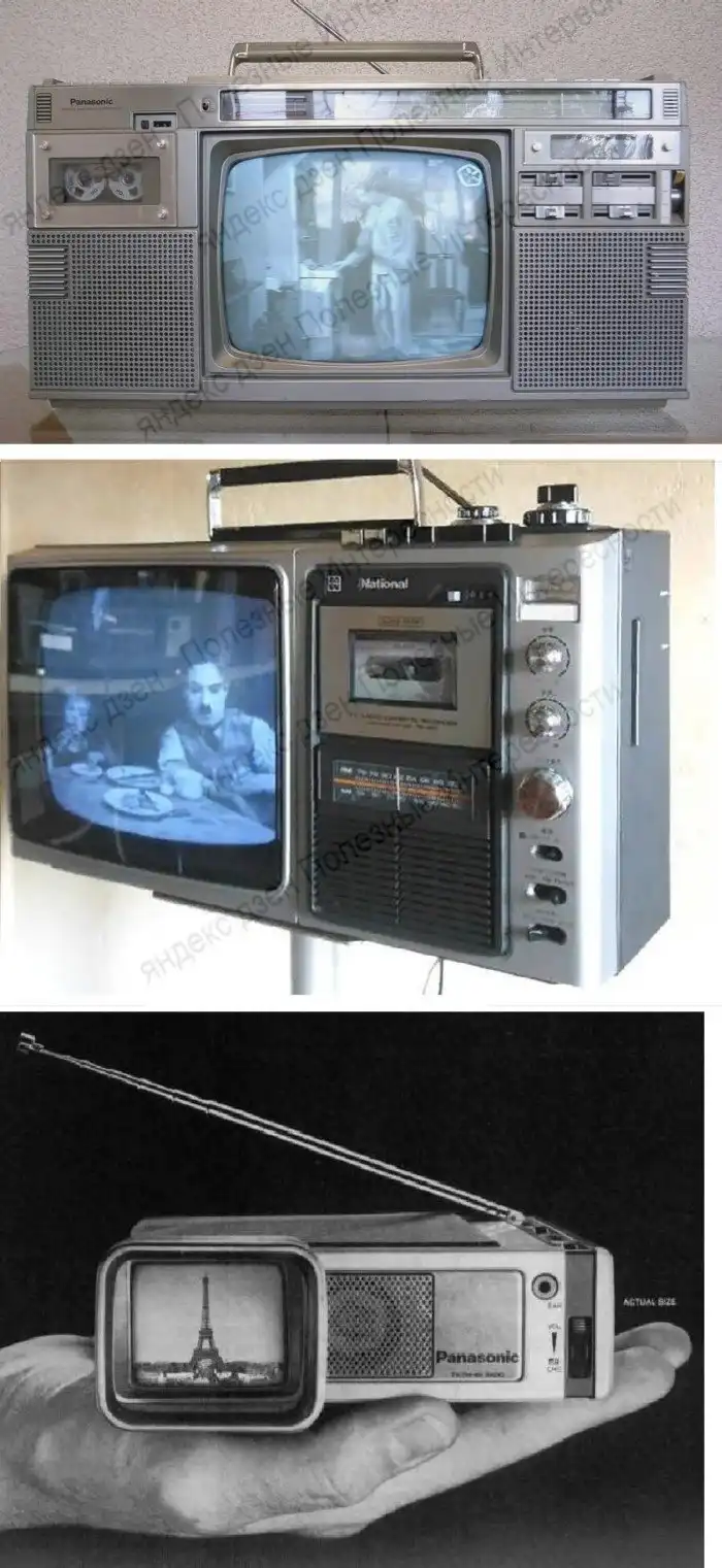 Переносные телевизоры и телемагнитолы, вплоть до самых миниатюрных