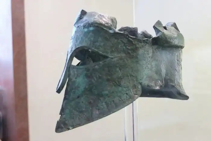 Шлем Мильтиада был найден в ходе разбора руин храма Зевса. В нем Мильтиад участвовал во время знаменитой битвы при Марафоне. И после битвы Мильтиад принес его, как важный символ своей удачи, в храм Зевса.