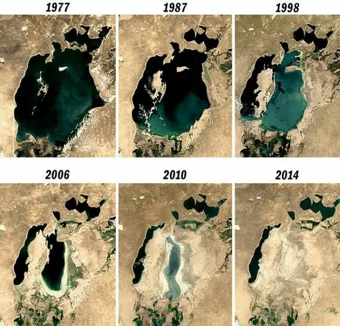 Снимки Аральского моря, сделанные со спутника в разные годы