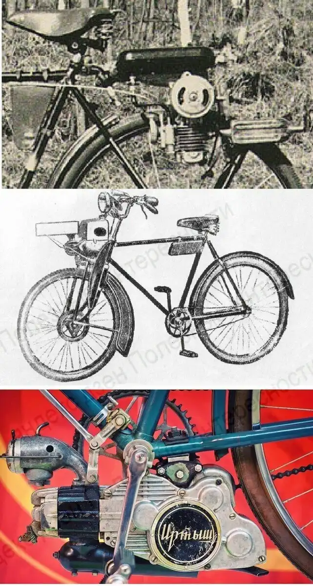 В начале 50х годов, в правилах дорожного движения появилась поправка, обязывающая получать водительские права владельцам всех мотоциклов. Для людей без водительских прав было решено создать велосипедные моторы с рабочим объемом меньше 50 куб. см. Пытались использовать иностранный опыт ("Иртыш", “МД-65”), а так же придумывали свои различные компоновки.