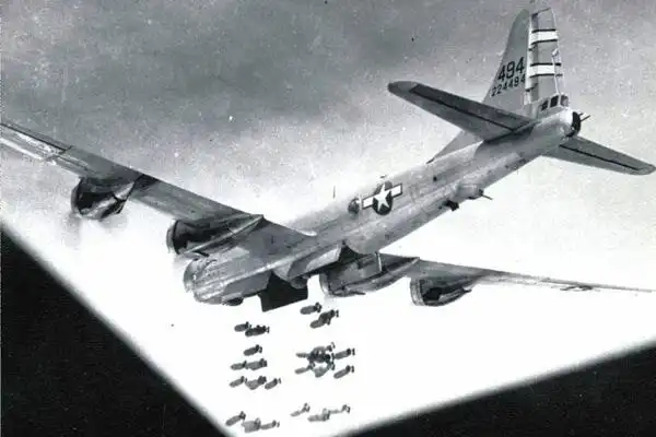 Бомбардировщик B-29 Superfortress сбрасывает бомбы. Источник изображения: wikimedia.org