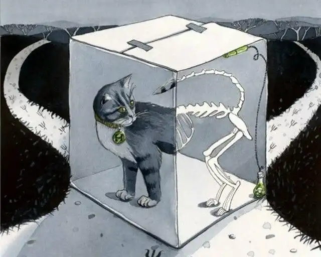 Некоторые врожденные проблемы Копенгагенской интерпретации весьма очевидны. Именно на них пытался указать физик Эдвин Шредингер, когда предложил заинтересованной общественности мысленный эксперимент, согласно которому кот, находящийся в коробке, может считаться живым и мертвым одновременно, пока никто не заглянул в эту коробку.