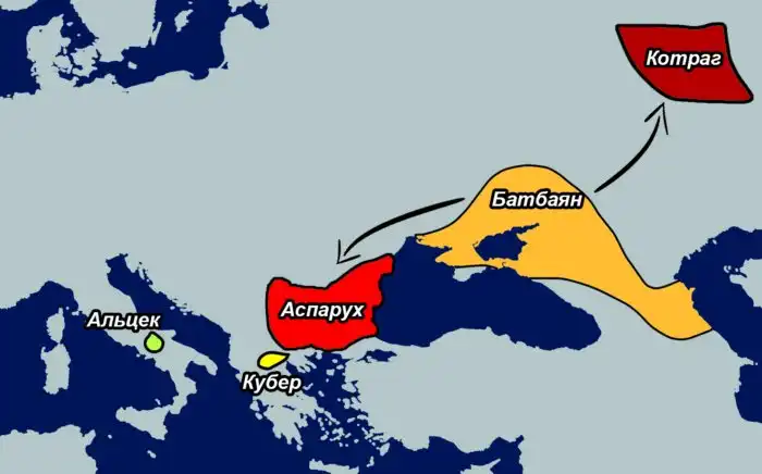 Остальные сыновья оказались мудрее. Котраг увел орду на восток, завоевал местные племена и сформировал Волжскую Булгарию. Страна приняла ислам и долгое время воевала с Русью за влияние в регионе. Аспарух откочевал в Южную Европу и сложил там Первое Болгарское царство.