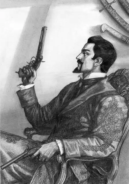 ...Это были пистолеты особого образца, которые Монте-Кристо заказал, чтобы упражняться в стрельбе дома. Для выстрела достаточно было пистона, и, находясь в соседней комнате, нельзя было заподозрить, что граф, как говорят стрелки, «набивает себе руку»...