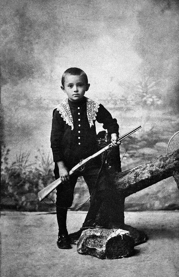 А это генеральный конструктор Сергей Павлович Королёв в детстве. Ружьё, правда, игрушечное...