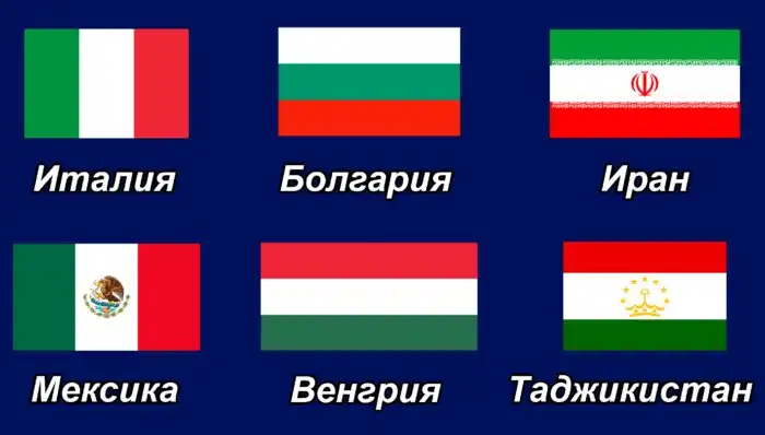 Схожая цветовая гамма наблюдается у флагов Венгрии, Ирана, Болгарии, Таджикистана