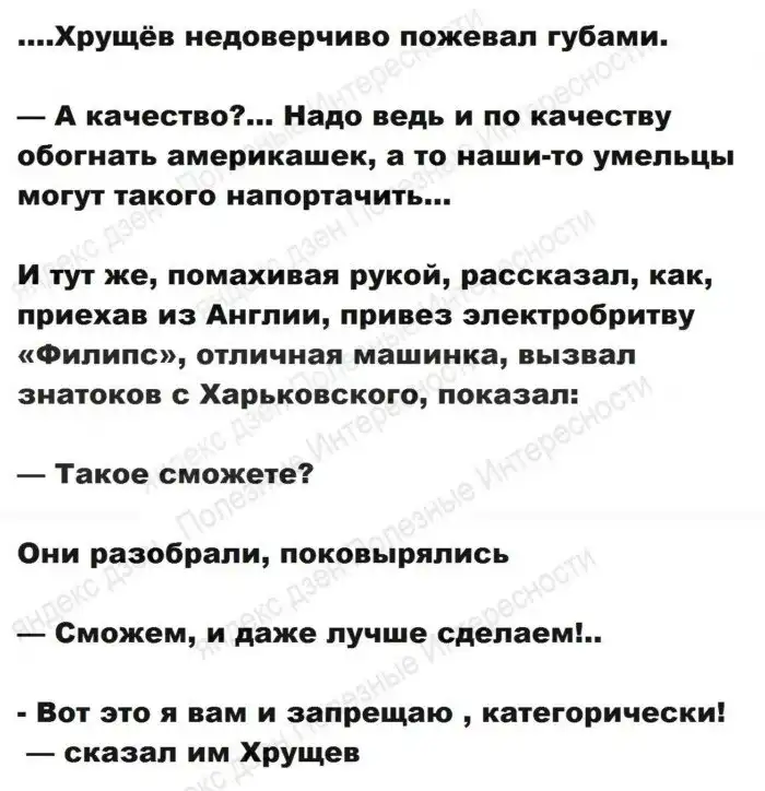 Молва приписывает авторство приказа на копирование Никите Хрущеву.