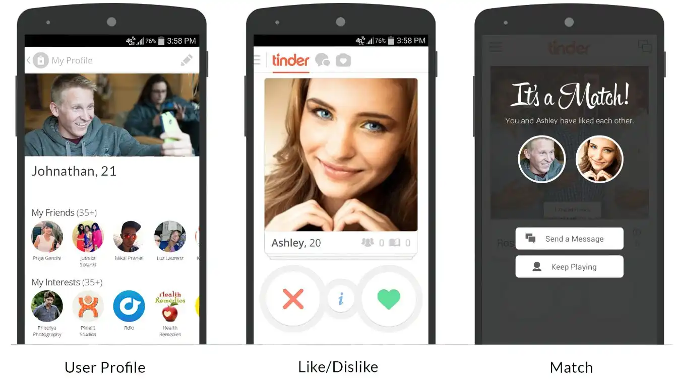 Под последним подразумевается виртуальная встреча двух рандомных людей. А точнее — демонстрация их фотографий друг друга. Выразить свою симпатию или безразличие можно легким свайпом в сторону.